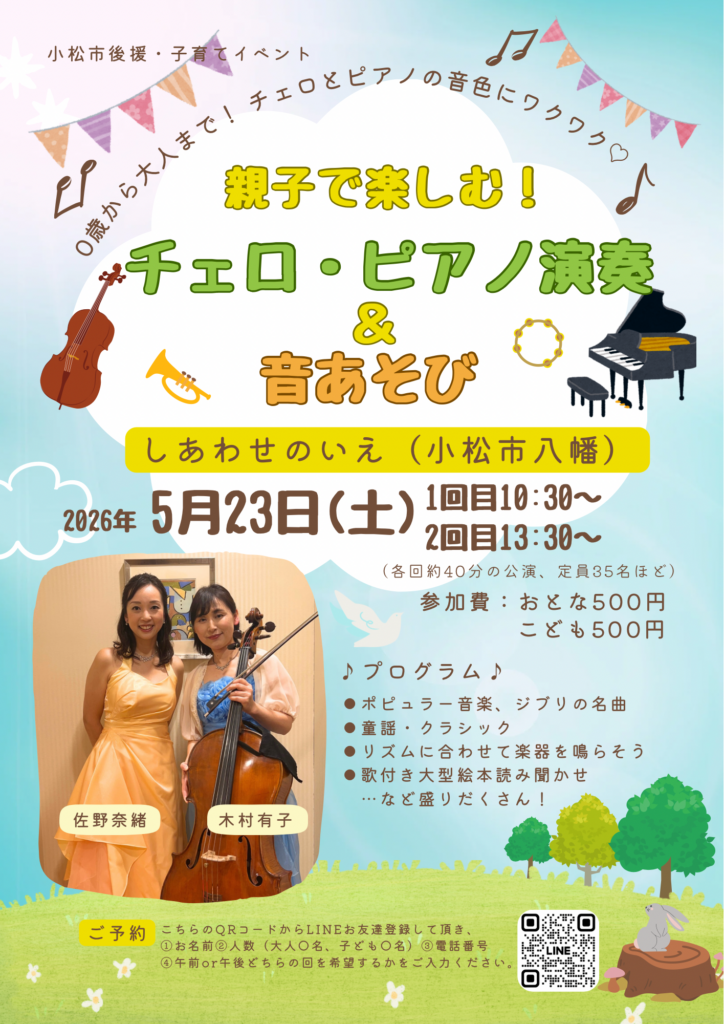 5/23(土)チェロ・ピアノ演奏&音あそび ご予約はコチラ♪